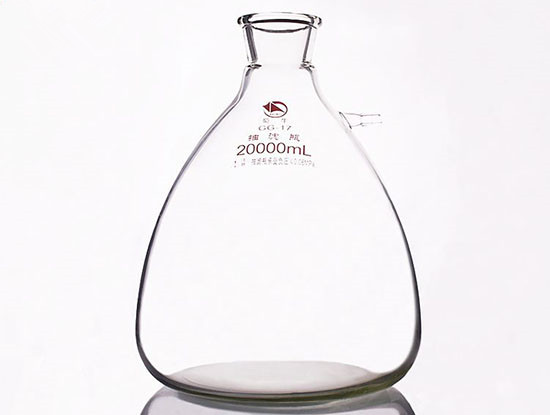 它是一個厚壁的三角瓶,在瓶頸的下部(肩部)和瓶底下截面處各焊接有上支管或上下支管二種形狀: