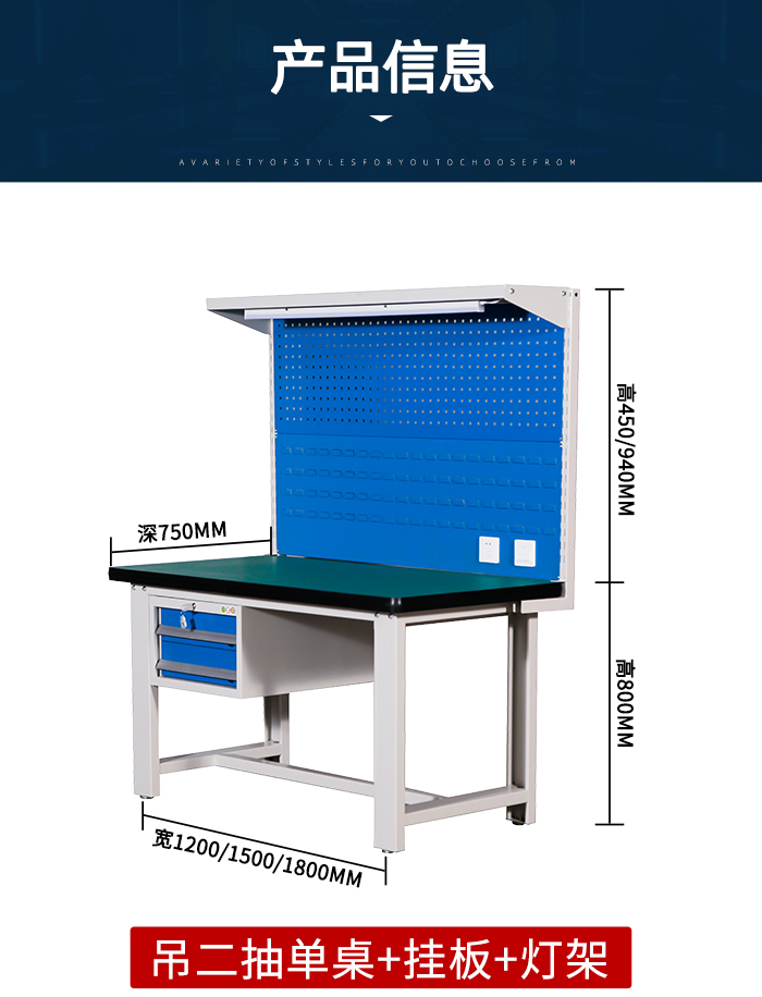 吊二抽單桌+掛板+燈架