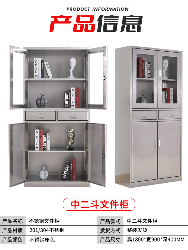不銹鋼文件柜中二斗